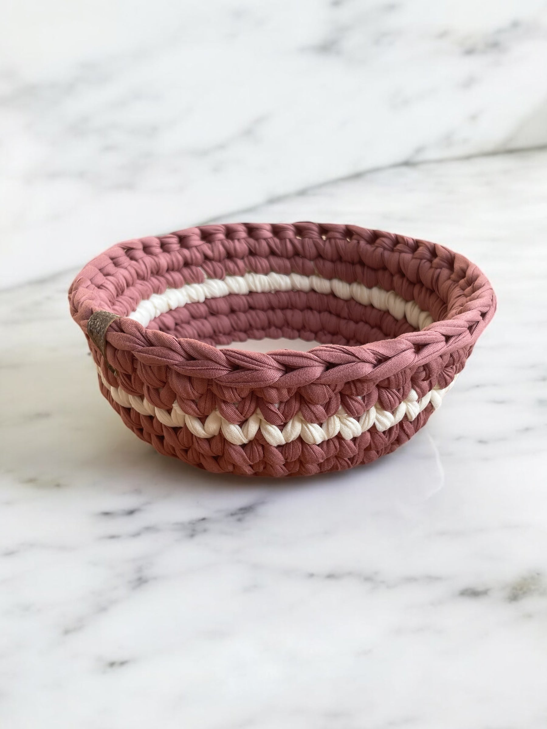 Zweifarbiger Korb aus Textilgarn mit Holzboden